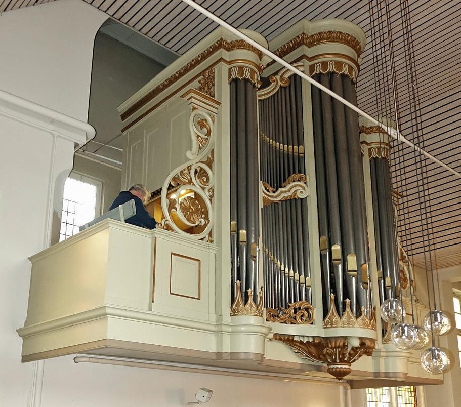 In het zwelwerk: prestant 8', baarpijp 8', viola di gamba 8', vox celeste 8', octaaf 4', koppelfluit 4', quintfluit 22/3’, woudfluit 2', tertsfluit 13/5', nasard 11/3', scherp III, fagot 16', dulciaan 8', hobo 8'.